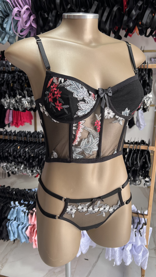 •Conjunto todo em renda poliamida